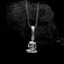 Fashioned from premium sterling silver, this necklace offers a harmonious blend of spiritual significance and contemporary style. The shimmering silver contours of the Buddha figure are a testament to a peaceful lifestyle, promoting the wearer's wellbeing and philosophical introspection.