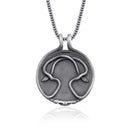 This meticulously crafted necklace features two intricately detailed ravens perched on a circular frame with a textured braided pattern. The lifelike design and dynamic arrangement bring a sense of movement and vitality to this unique piece.